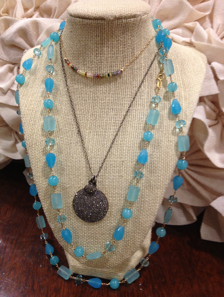 On this particular day that I stopped by to check out her jewelry, she was helping a client coordinate her outfit with her jewelry for an event that the client was attending. She also makes house calls and customizes pieces for even the most discriminating client. Is there anything Jennie doesn’t do???
